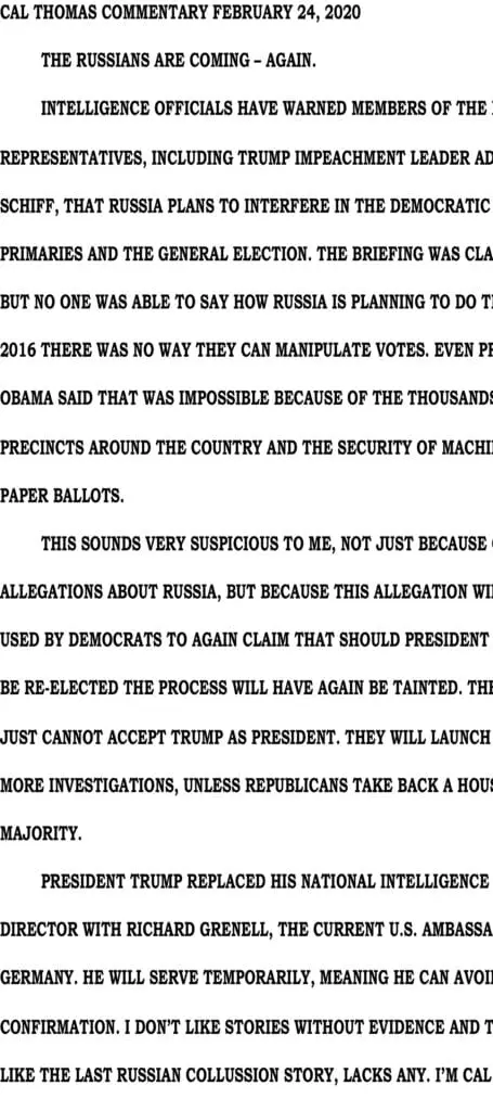 CAL THOMAS COMMENTARY AUGUST 4, 2025